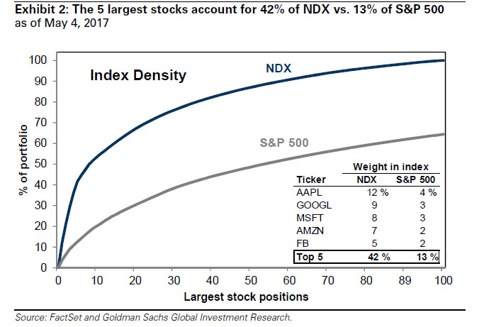 Die ersten vier Plätze machen - sowohl im SP-500 als auch im Nasdaq 100 - dieselben vier Aktien aus
