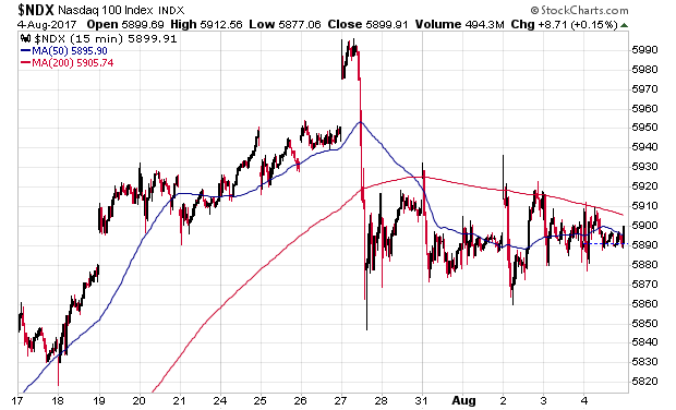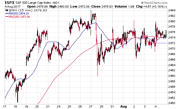 Der Bondmarkt weigert sich, das von der Fed vordozierte Wachstums- bzw. Inflations-Szenario einzupreisen. Die Langlaufrenditen bleiben niedrig. So läuft die Schere zwischen Bondmarkt (seitwärts) und Aktienmarkt (steil aufwärts) immer weiter auseinander.