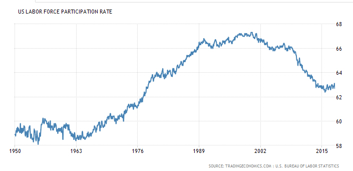 2000 toppte die LFPR bei 67,3 % aus. Seitdem geht es non-stop bergab. Erst wegen der Dot.com-Krise, dann wegen der Finanzkrise.