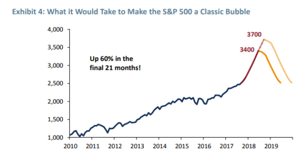 Für den SP-500 sagt Jeremy Grantham einen Meltup bis in die Kurszone 3400 bis 3700 voraus (Chart unten). Das entspräche historisch dem klassischen Blasen-Szenario, wie man es auch 1929 und 2000 gesehen hatte.