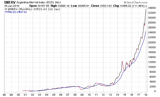 Die Rallye in Argentiens Aktienindex ist von Hyperinflation von über 40 % in 2017 getrieben.