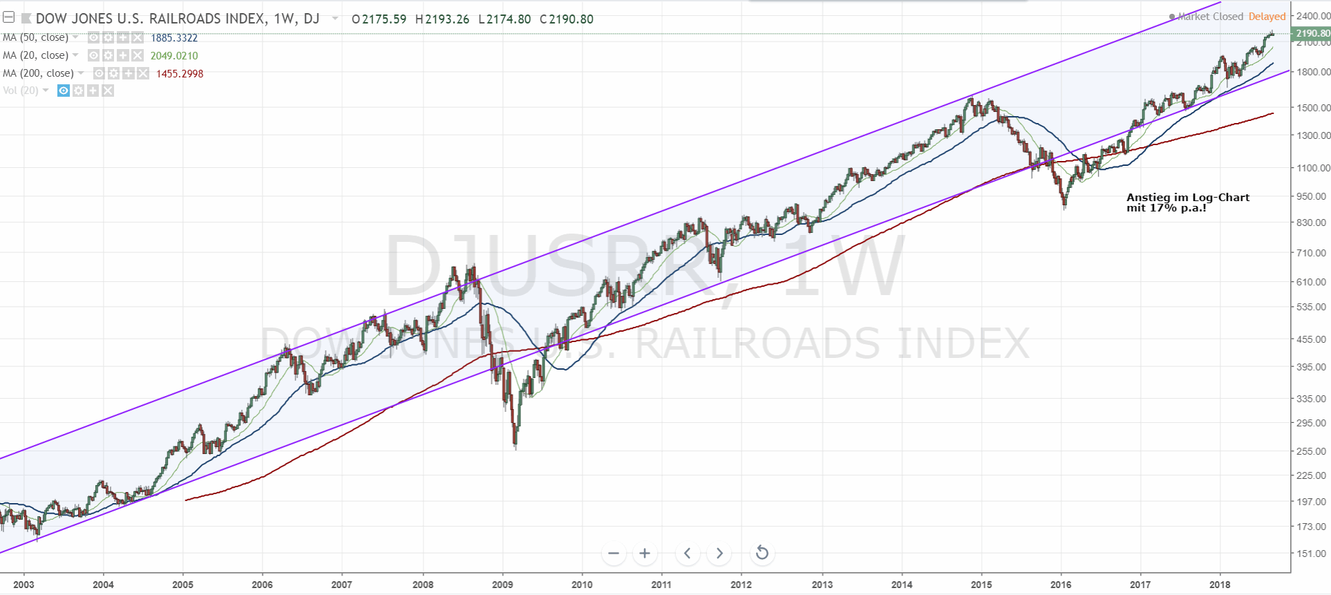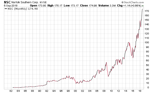 Norfolk Southern, deren Aktie in den letzten Jahren von allen Eisenbahnaktien am stärksten zugelegt hat, habe ich mal etwas näher beleuchtet. Die Daten dieses Unternehmens können keineswegs einen solchen Sprung begründen. Nun ein wenig Fundamenatlanalyse: Die Umsätze und Gewinne seit 2014 lagen relativ konstant auf gleichem Niveau. Allerdings kam es in Q4/17 im Zuge der Steuerreform zu einer nennenswerten Unternehmenssteuerrückzahlung, die den Nettogewinn für 2017 erheblich hievte - ein Einmaleffekt. Für dieses Jahr ist jedoch kein solcher Effekt mehr drin, da die Quartalssteuern bereits auf dem reduzierten Satz basieren. Das Unternehmen hatte jedoch in beiden ersten Quartalen 2018 kaum höhere Umsätze als in den Vorjahren, und auch die Gewinne lagen nicht wesentlich höher. Die aktuelle Schulden/Cash Ratio liegt bei über 23 (10 Mrd./430 Mio - bei einer Marktkapitalisierung von 49 Mrd.). Unter betriebswirtschaftlichem Aspekt eine nicht gerade gesunde Situation, über die die Kursentwicklung hinweg täuscht.