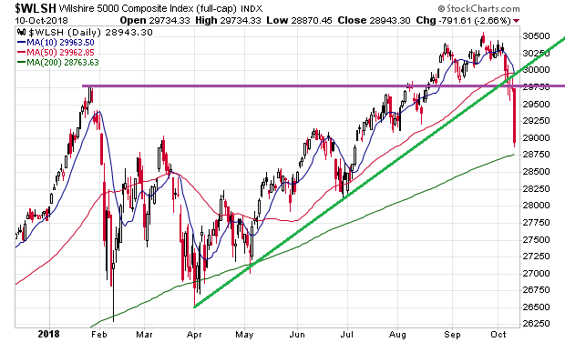 Der Wilshire 5000 Index hat seit Monatsbeginn 1,4 Bio $ seiner Marktkapitalisierung eingebüßt. Heute schlossen alle Leitindizes auf Tagestief; die DOW Werte liegen sämtlich im roten Bereich. Es "rumpelt", wie Walter dies so schön ausgedrückt hat.