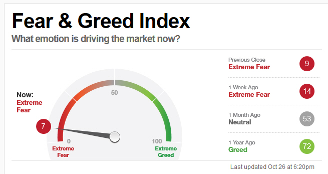 Ich hatte hier Ende September über den Prognosewert des Fear&Gread-Index philosophiert. Dazu verglich ich den Drei-Jahres-Chart des FG-Index mit dem Drei-Jahres-Charts des SP-500.