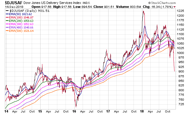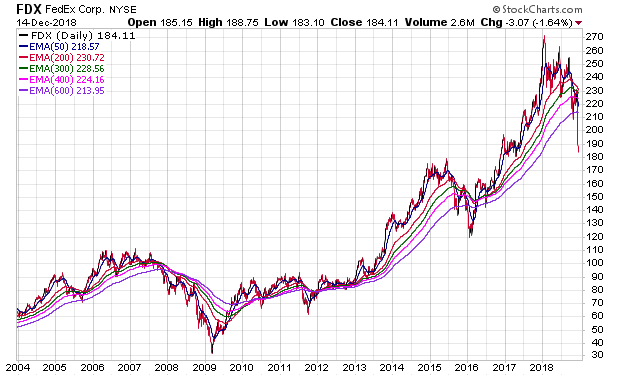 Der stärkste Niedergang zeigt sich im Chart von Fedex - und dies in der Vorweihnachtszeit! Hierzu ein Hinweis: https://www.ariva.de/optionsscheine/CA2SKV (keine Aufforderung zum Kauf!)