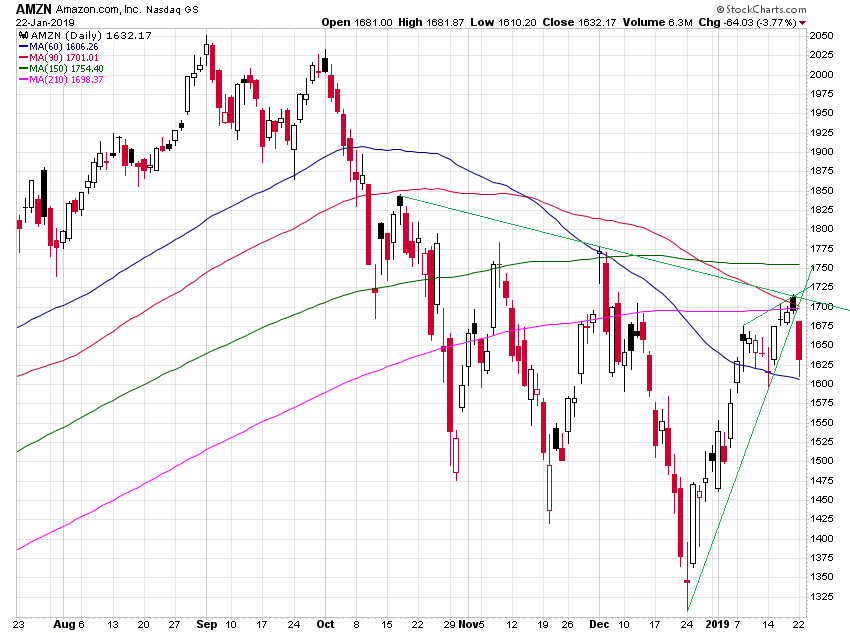 Gleitenden Durchschnitten. Dies liegt daran, dass die Standarddurchschschnitte MA50 und MA200 den Strukturen von Kurvenentwicklungen oftmals nur sehr unbefriedigend gerecht werden. Bei den Leitindizes gibt es kein Problem damit, doch bei Sektor- und Branchenindizes und vor allem bei Einzelwerten sehr wohl. Ich versuche daher, von den 08/15 MAs weg zu "maßgeschneiderten" Durchschnitten zu kommen: z.B. MA75 oder MA90 (siehe # 487 Amazon-Chart), EMAs oder gar Fibo-EMAs. Diese individualisierten Durchschnitte gewinne ich durch das Kurvenstudium über längere Zeiträume.