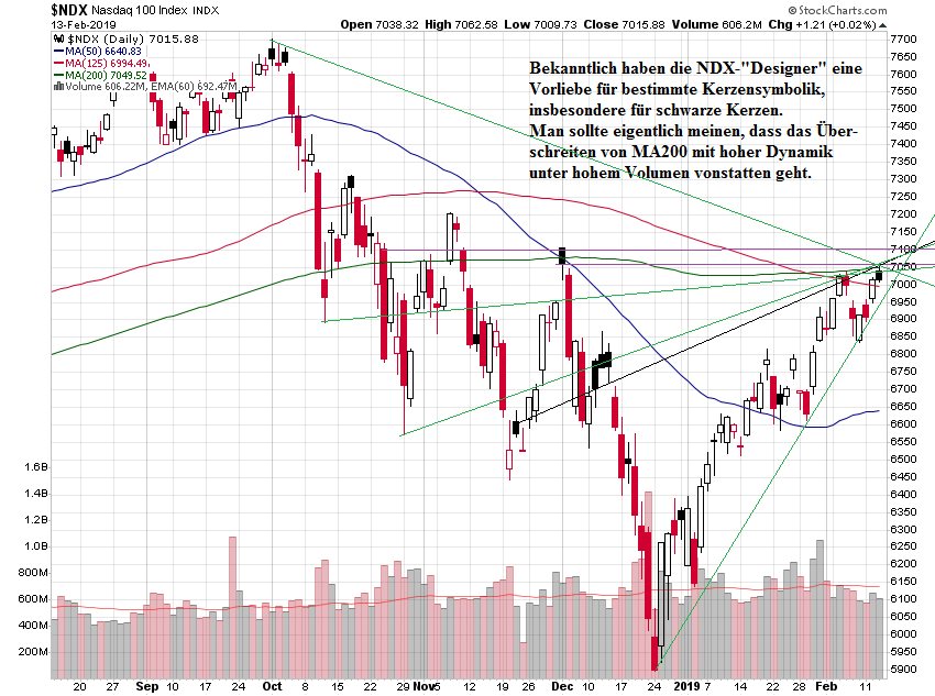 Noch interessanter ist die Frage, was uns solche Megaphon-Charts eigentlich an bärischem Erkenntnisgewinn bringen. Sie sehen ja mit den vielen Trendlinien wirklich hübsch aus, und die "Chartkonstukteure" haben in der Tat "wieder mal Präzisionsarbeit" geleistet, wie Wawidu gern und oft schreibt. Aber was bringt es?