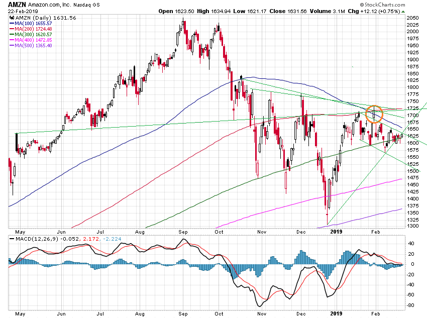 Citgigroup, Goldman, WellsFargo, 3M; Caterpillar, DowDupont, IBM (MA200 unter MA600!), Amazon, Apple, Facebook.