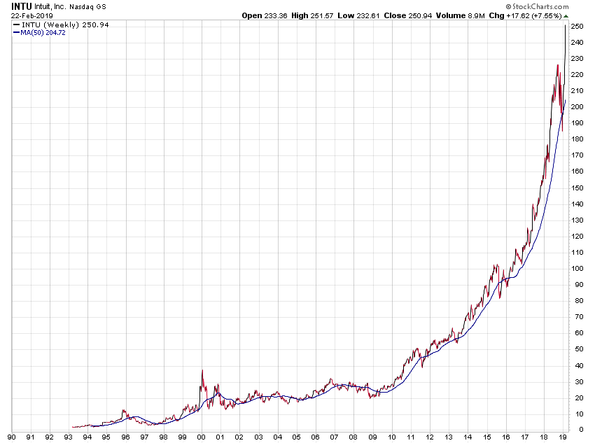 Intuit: Software Applications - im NDX gelistet - Trailing P/E 53 - Forward P/E 34 - Price/Sales 10,7 - perfekte "Fahnenstange"