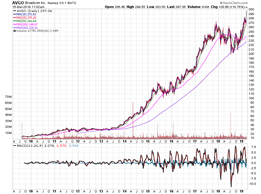 Im angehängten Chart von AVGO alias Broadcom (im NDX-Verzeichnis geführt) können wir schön erkennen, wie der Wert in Richtung Stratosphäre flieht. Die Grundtonart ist zweifelsfrei As-Dur mit kurzen Intermezzi in f-Moll. Das Werk ist streng "durchkomponiert", was sich besonders im Finale zeigt (siehe weiterer Chart!).