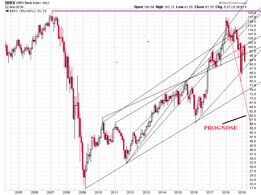 Die jetzige Lage ist mit der aus 2008 kaum zu vergleichen. Seit 2008 sind die Notenbanker als gigantische Kurs-Manipulateure (Bonds und Aktien) in Aktion getreten. Das ist finanzhistorisch eine Novität. Folglich kann man auch alte Chart-Schemen aus 2007 heute nicht (mehr) als prognostische Muster verwenden.