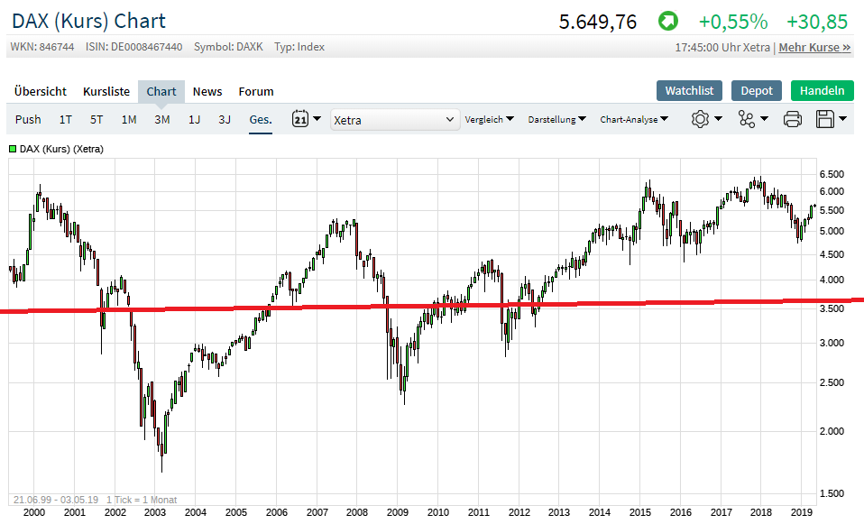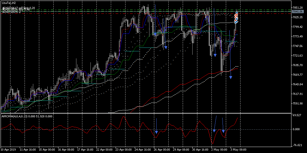 Was passierte seit dem 25.4. ? Am 25.4. entstand ein deutliches Abwärtsmomentum aus einem neuen Hoch heraus, "plötzlich und unerwartet", und das wurde mit A=B am 26.4. wiederholt. Dann wurde wieder das Hoch angesteuert , 2.Anlauf, das wieder abverkauft wurde, aber diesmal mit weniger Momentum. 3. mal zum Hoch, also 2* bestätigtes Hoch => " 3 pushes" und dann die Gegenbewegung, jetzt deutlich höheres Momentum und wieder A=B, neues Tief am unteren Bollinger-Band (13 Tage). am 2.5.2019. Hier schöne Kaufgelegenheit "einfach so", ohne weitere Charttechnik, einfach mit dem Bollinger-Band.