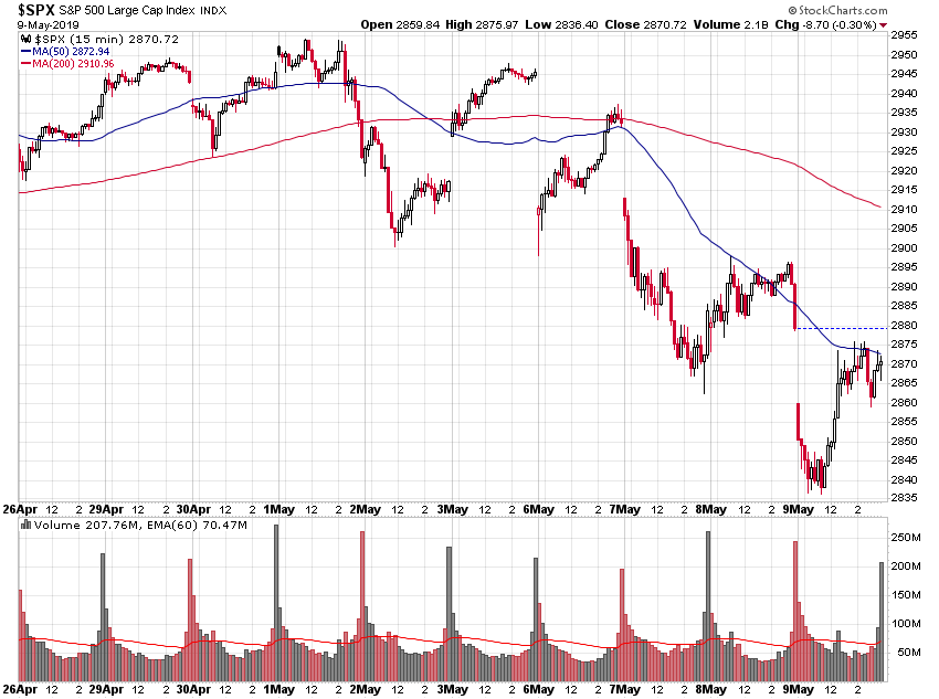 Weil die Wall Street mit der Zollerhöhung (von 10% auf 25%) auf chinesische Waren so richtig glücklich und zufrieden war, wurde gestern nicht etwa weiter abverkauft...Nein, dieses Event musste mit ner Kursrally vom Tief in den grünen Bereich gefeiert werden. "