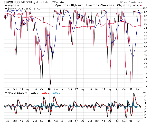 70% der wichtigsten Aktienindices weltweit liegen über der GD200. Vor kurzer Zeit waren es noch 100%. Und gerade noch 10% liegen über der GD20. D.h., das weltweite Aktienklima hat sich eingetrübt.