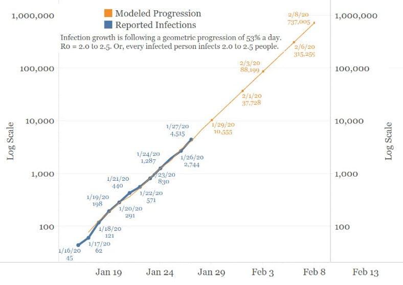 Für die Börsen ist das Problem nicht direkit das Corona-Virus und die exponentiell steigende Zahl von Infizierten und Toten. Ökonomisch gravierender sind die wirtschaftlichen Folgen für China (und die Restwelt). China ist aktuell bereits in großen Regionen quasi "stillgelegt". In vielen chin. Städten wurde sogar der Nahverkehr eingefroren, und niemand darf ausreisen.