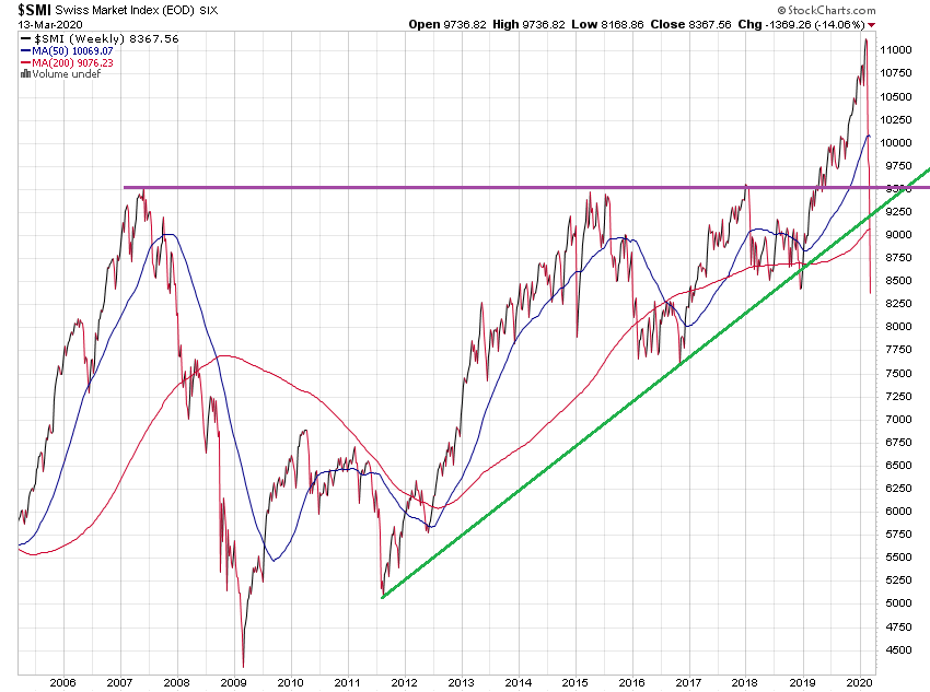 Es ist nämlich keinesfalls gesichert, dass der Gelddruck-Taschenspielertrick, mit dem die Fed seit 2009 die Märkte hochgejubelt hat, künftig noch weiter funktionieren wird. Bereits seit Montag letzter Woche ist die Fed mit neuen Repos "am Pumpen", ohne dass der laufende - und extrem steile - Ausverkauf nachhaltig gestoppt werden konnte. Kräftig hoch hoch ging es erst in den letzten 30 Handelminuten am Freitag, nachdem Trump die neuen Finanzhilfen angekündigt hatte.