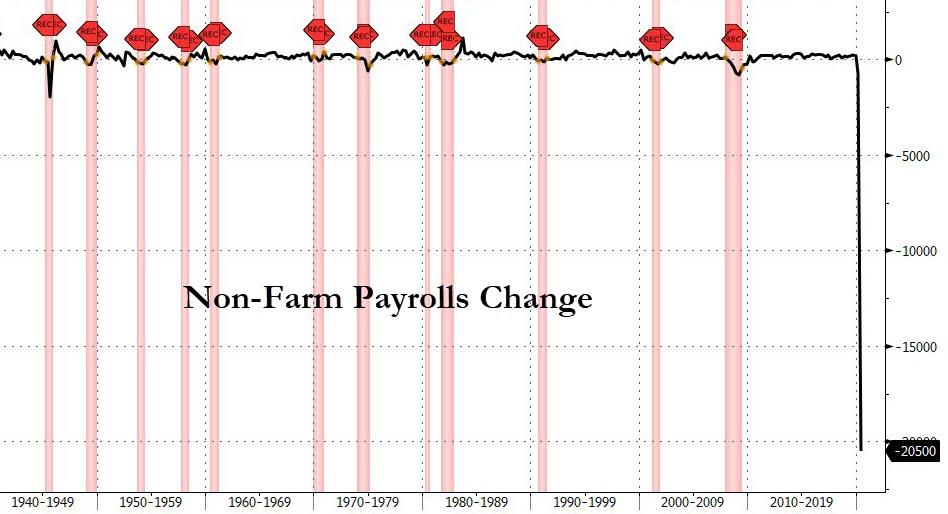 "The U.S. economy lost 20.5 million jobs in April, the Labor Department reported. Economists polled by Reuters had forecast payrolls diving by 22 million, but the decline still marked the steepest plunge since the Great Depression.