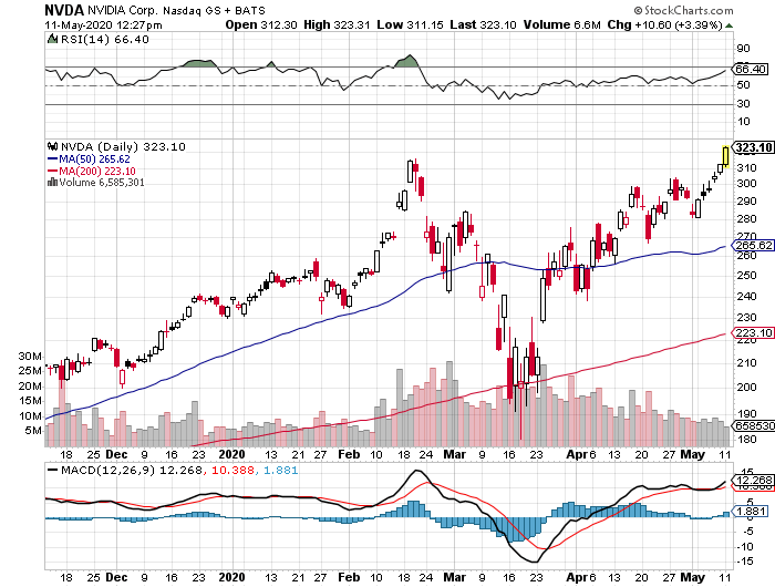 Nvidia Corp. (NVDA) shares are on track for a record close Monday, having clawed their way back from a COVID-19 drop below $200, after one analyst boosted his price target ahead of earnings. Nvidia shares rose 3% to $321.63 at last check and are on track for their first record close since Feb. 19, when they finished at $314.70. Shares bottomed on the year on March 16, when they closed at $196.40....