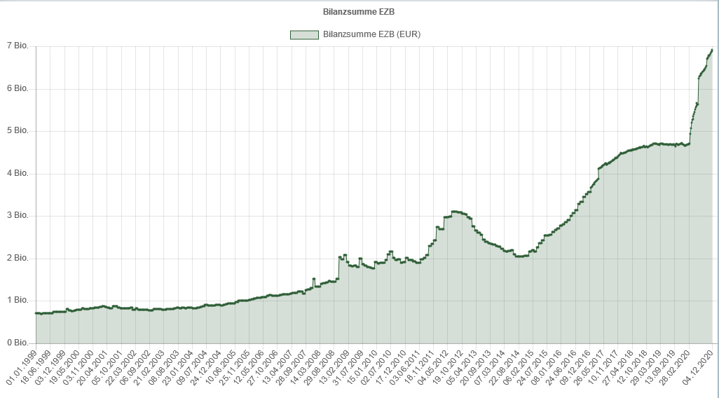 - Griechenland hat vom Zeitpunkt der Euroeinführung bis 2010 eine viel zu niedrige Neuverschuldung nach Brüssel gemeldet, sich also viel stärker neu verschuldet als "zugegeben". 2010 konnten die Griechen ihre Überschuldung nicht mehr verbergen und waren technisch pleite. Erst die Gefahr von Staatspleiten machte die Saatsbailouts der EZB erforderlich: Die EZB kaufte dazu (über andere Banken, denen sie Gratiskredite namens LTRO gab) ab 2012 massiv Staatsanleihen aus Problemstaaten und betrieb damit indirekt die ihr per Maastricht verbotene "Staatsfinanzierung aus der Notenpresse". Draghi setzte sich einfach darüber hinweg.