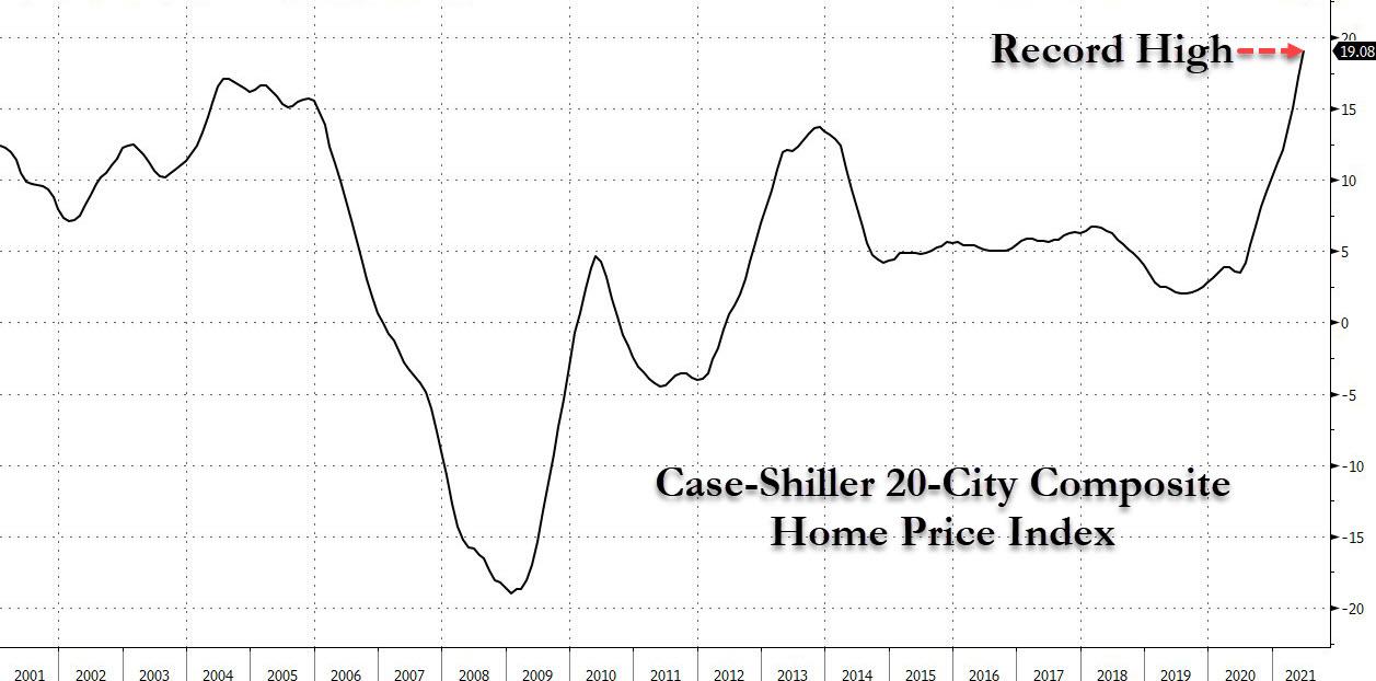 "Es sollte (zumindest vor ein paar Wochen) das am meisten erwartete Ereignis des Sommers im Bereich der Zentralbanken sein, bei dem Jerome Powell den Zeitplan für das bevorstehende Tapering bekannt geben sollte; Stattdessen entpuppte sie sich als marktweiter dovisher Katalysator, der die Aktien auf neue Allzeithochs steigen, den Dollar abrutschen und die Renditen deutlich sinken ließ, denn das Beste, was Powell tun konnte - selbst als er sagte, dass die Zentralbank noch in diesem Jahr mit der Reduzierung ihrer monatlichen Anleihekäufe beginnen könnte, was inzwischen jeder wusste -, war die Erwähnung des jüngsten FOMC-Protokolls als Wegweiser für das Tapering, während er gleichzeitig wiederholte, dass die Inflation vorübergehend sein könnte und an sich kein Katalysator für eine Straffung ist.