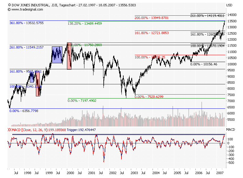Die erste Frage habe ich aus technischer Sicht am Beginn meiner Ausführungen beantwortet. Da derzeit keine großen technischen Divergenzen mehr vorliegen, wie sie üblicherweise im Vorfeld großer Abwärtsbewegungen festzustellen sind, ist die Wahrscheinlichkeit sehr groß, dass die Märkte den Hochpunkt dieser zyklischen Hausse erst im Spätsommer erreichen werden. Dennoch müssen Sie sich darüber im Klaren sein, dass die Aktienmärkte in dieser Situation einem Tanz auf dem Vulkan gleichen. Frühere von großer Spekulation gekennzeichnete Phasen haben aber gezeigt, dass gerade die Endphase, die letzten Monate einer Spekulationsblase von besonders irrationalem und spektakulärem Marktgeschehen geprägt sind. Denken Sie beispielsweise an das erste Quartal 2000 oder an das erste Halbjahr 1987.