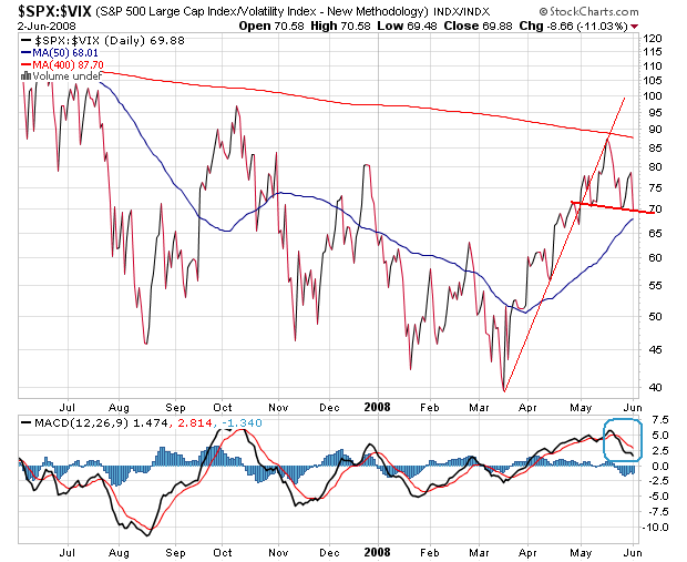Licht am Ende des Tunnels, das Schlimmste ist vorbei, die Erholung steht bevor: Solche Aussagen bezüglich der Finanzkrise waren Anfang Mai von Joseph Ackermann (Deutsche Bank), Klaus-Peter Müller (Commerzbank), Hank Paulson (US-Finanzminister), Jamie Dimon (JP Morgan Chase) sowie von der Bank of England zu hören. Auf dem nächsten Chart synchronisieren wir diese Aussagen mit dem Marktgeschehen. Auf dem Chart ist die relative Performance der US-Banken zum S&P 500 dargestellt.