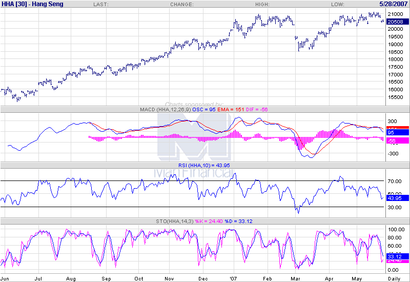 Ich hatte Ihnen ja in der Vorwoche dargelegt, dass es sich hier um eine fast ausschließlich psychologische Hürde handelt. Warum also ausgerechnet Verkäufe an dieser von so vielen beachteten Marke, obgleich doch die überwiegende Mehrheit der Akteure daran interessiert ist, weitere Kursgewinne zu erzielen? Die Ölpreise waren zumindest beim US-Öl einigermaßen stabil. Die Konjunkturdaten waren kein Grund zum Jubeln, aber auch keine wirkliche Ernüchterung. Das Benzin wurde zwar erneut teurer, aber das wurde auch bislang elegant ignoriert. Und die viel gescholtenen Kommentare des ehemaligen Notenbank-Chefs Alan Greenspan waren nichts weiter als Aussagen zum chinesischen Aktienmarkt, die selbst ein weniger erfahrener Börsianer treffen könnte: ‚Das kann dort nicht gut gehen“. Also, warum diese verdächtige Stagnation der Kurse?