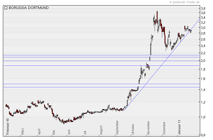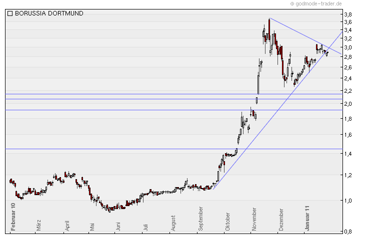 was du da ansprichst ist ferne Zukunftsmusik, erst muß der BVB raus aus den roten Zahlen, das wird allein schon Jahre dauern. Zudem kommt noch das das Stadion zurückgekauft werden muß, dieser Rückkauf ist Vertraglich geregelt und wird bis ca 2020 andauern. Die BVB Aktie ist eben ein Zockerwert, wie ein Tipschein... Nur bei einem Tipschein verdient man mehr.
