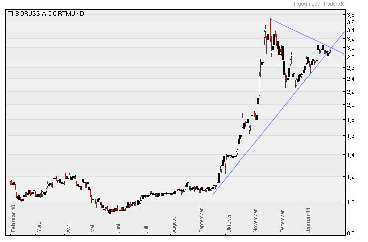 müssten wir alle doch mittlerweile kennen. Nach einem Sieg rauscht die Aktie im außerbörslichen Handel nach oben und am Montag gibt die Aktie dann wieder nach. Hatte ja auch gestern geschrieben, das nach den gerade mal 6% bei L&S ich nicht so euphorisch gestimmt bin wie manch andere hier und siehe da heute morgen kam die Bestätigung und ich finde das sogar gut so, denn die Aktie sollte weder nach oben, noch nach unten ausschlagen wegen einem Sieg oder einer Niederlage. Denn ein Spiel alleine (zumindest im moment) entscheidet gar nichts bezüglich der Zukunft des Vereins....Langfristig bin ich vom BVB überzeugt und da werden auch die Gewinne kommen, aber ich glaube die Zeiten wo nachhaltig 10%/20% oder noch mehr erreicht wurden sind vorbei. Diese Kurssprünge haben wir der realisierung als Meisterschaftskanditat zu verdanken. Das spricht auch dafür das ein Teil eingepreist ist, denn die Erwartung von uns allen ist ganz klar da. Dennoch bleibe ich davon überzeugt das die Aktie weiter steigen wird bei immer mehr sicher werdender Meisterschaft, denn alles ist ganz gewiss noch nicht eingepreist. Ziemlich spannend wird auch der nächste Quartalsbericht sein. Dort sollte sich auch das Ein oder Andere der "neuen Mannschaft" bemerkbar gemacht haben....