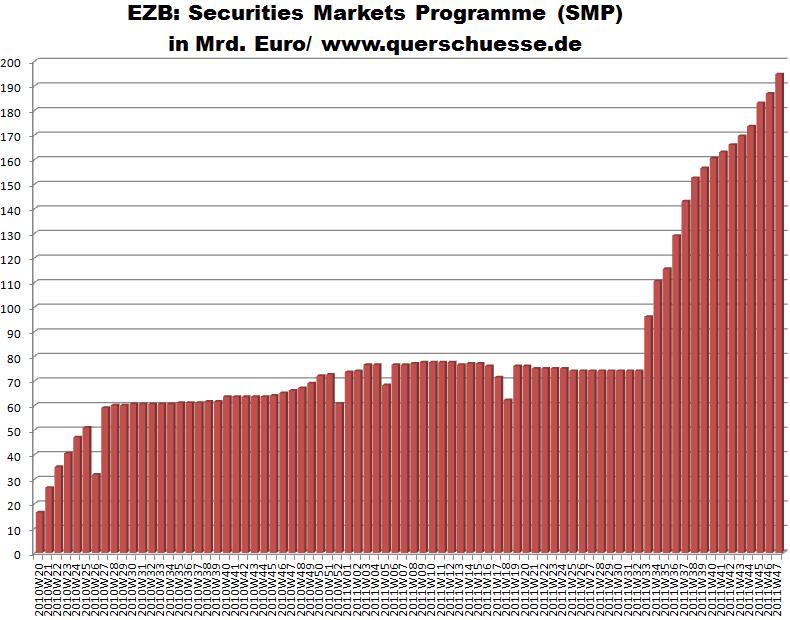 Inwieweit die Aufkäufe sinnvoll sind, wird nach wie vor diskutiert. Jedenfalls möchte die EZB versuchen durch Aufkäufe der Staatsanleihen an den Märkten die Renditen möglichste niedrig zu halten. Dass das nicht funktioniert, davon kann sich jeder selbst ein Bild machen wenn der die Entwicklung der Renditen seit der 20. Kw 2010 (dem Beginn des Programms) bis heute vergleicht...