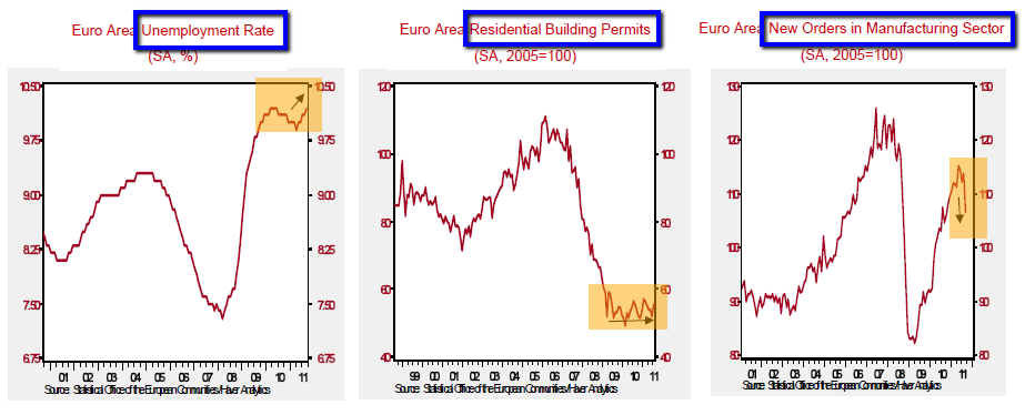 1.  Die Schuldenkrise der PIIGS-Staaten und daraus folgenden Sparmaßnahmen, die die Konjunktur       in den betroffenen Ländern in eine Depression drücken.