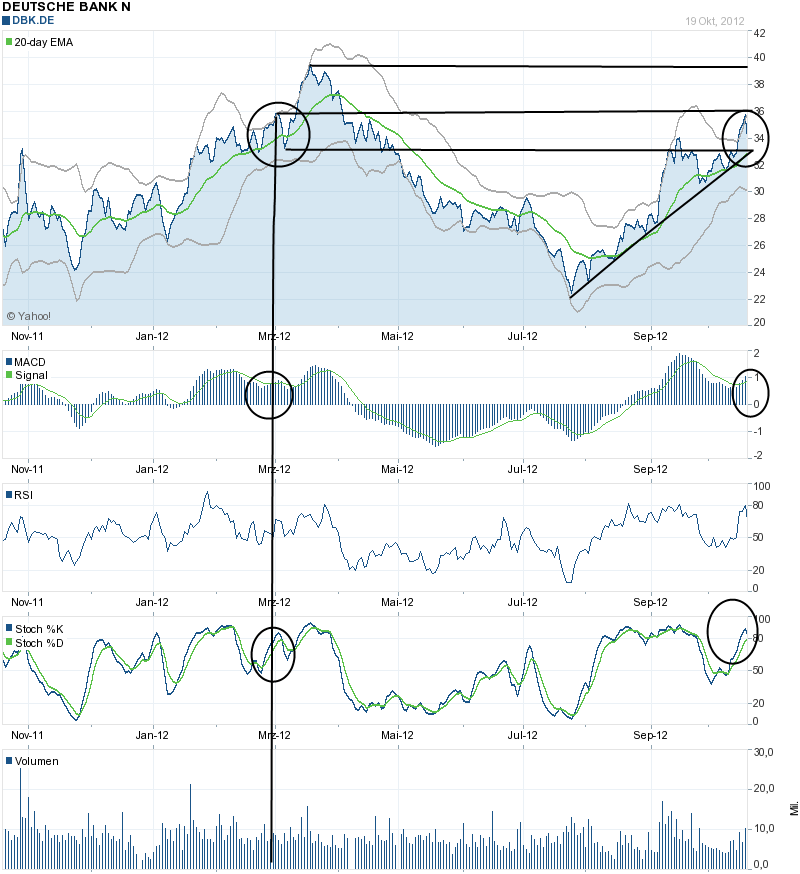 Und zur Aktie: Die Deutsche Bank wird zu 0,59 KBV gehandelt, wobei das Unternehmen eindeutige Gewinne macht. Toxische Papiere sind zu großen Teilen aus den Bilanzen raus, zudem garantiert die EZB ja unbegrenzt für sämtliche EU-Staatsanleihen. Und in Deutschland dürfte die Gefahr von Kreditausfällen eher gering sein, da unsere Wirtschaft nach wie vor wächst und weil die meisten Unternehmensbilanzen nach 2008 recht solide sind.