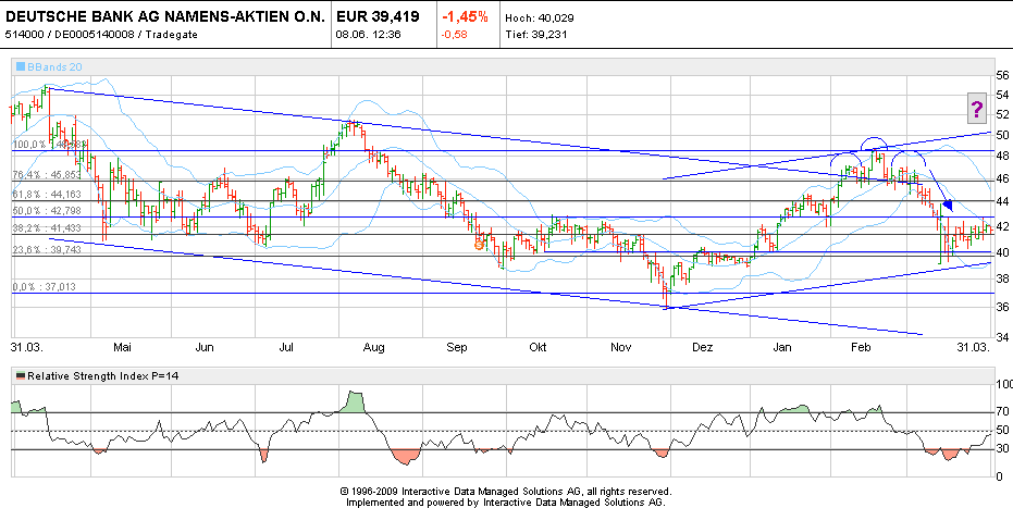 Nun haben wir alles verloren. Die 40er Marke ist weg... Bald geht es Richtung 30. Logische Erklärung? Fehl am Platz! Hauptsache, auf die Deutsche Bank einprügeln.