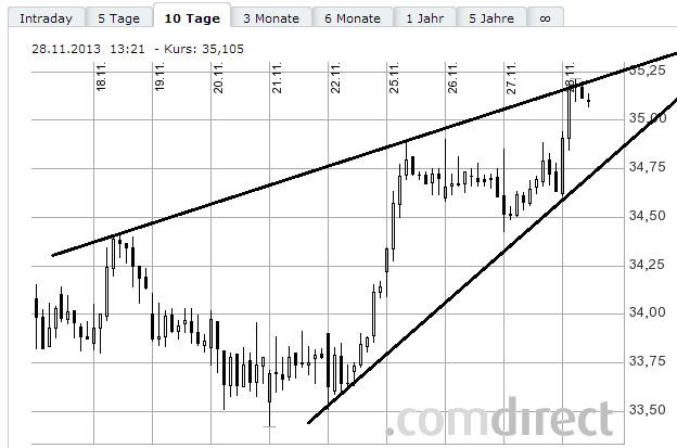 Meiner Ansicht nach ist die DB zwischen 30 und 40 Euro gefangen, enger zwischen 33 und 38 Euro. Die 40 Euro scheinen eine unüberwindbare Hürde darzustellen.