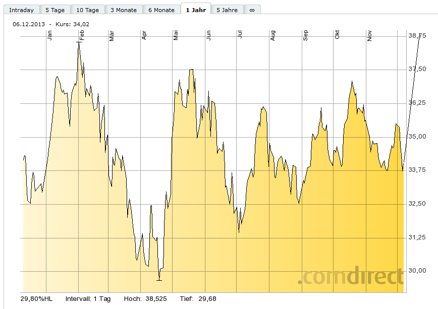 Auch wenn es jetzt etwas nach oben dreht, glaube ich nicht, dass wir die 35 nochmal sehen werden. Wer bei 33,60 eingestiegen ist, kann bestimmt seinen Schnitt machen, aber an die DB-Weihnachtsrally glaube ich schon lange nicht mehr.