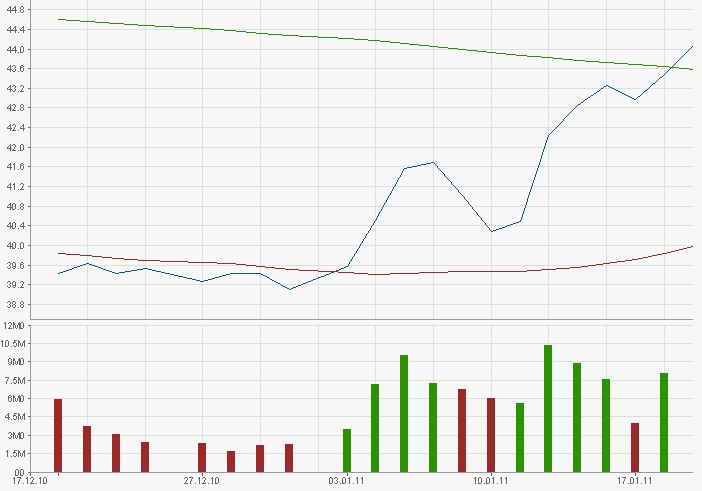 hat sich wohl erledigt, der SK wird wohl nicht über 44 liegen, die Reaktion auf die USA Zahlen sieht momentan etwas anders aus als viele hier erwarteten. Oben ist die 200, unten die 38 Linie zu sehen.