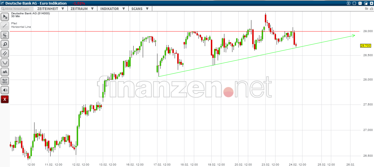 Die Vorgabe einer Eigenkapitalverzinsung von mindestens 12 % nach Steuern dürfte auf Konzernebene in dem Niedrigzinsumfeld allerdings kaum zu halten sein. Da zuletzt auch andere Großbanken wie UBS und BNP Paribas ihre Renditeziele vorsichtiger formulierten, dürften Deutsche-Bank-Aktionäre nicht vom Hocker fallen, sollte die künftige Renditeerwartung abgeschwächt werden.