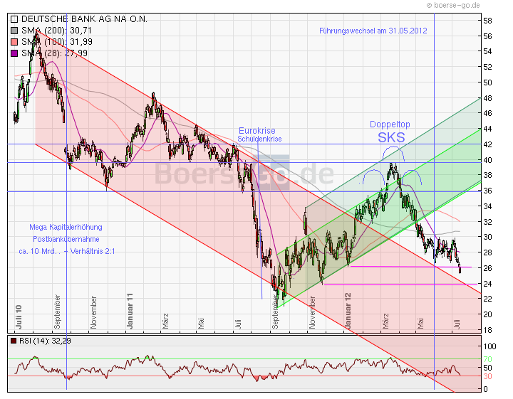 Das Schweigen von Jain und Fitschen lässt mein Vertrauen in das Unternehmen schwinden. Ich stimme zu, dass eine Kapitalerhöhung nicht mehr unmöglich ist, obwohl Jain erst kürzlich betont hat, dass eine solche Maßnahme nicht ansteht. Was mich eigentlich erschüttert ist die Tatsache, dass überall hoch dotierte Leute in den Managementetagen sitzten. Fast ausschließlich können die Personen Studium und diverse Titel vorweisen. Und, was kommt heraus? Nichts, außer Misswirtschaft, Bestechung, Fälscherei, etc. Hat man dies wirklich nötig? Deutschland wurde von Menschen aufgebaut, die zum großen Teil kein Studium und keine Titel vorweisen konnten. Ist man damit schlechter gefahren? Vielleicht sollte man sich hierüber auch Gedanken machen....