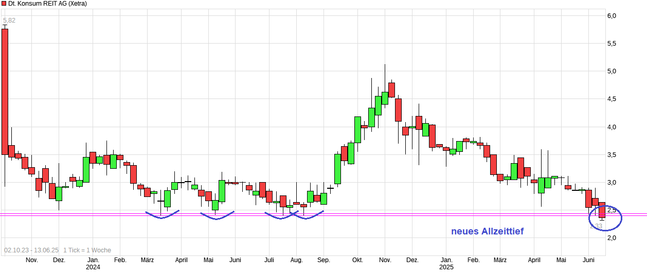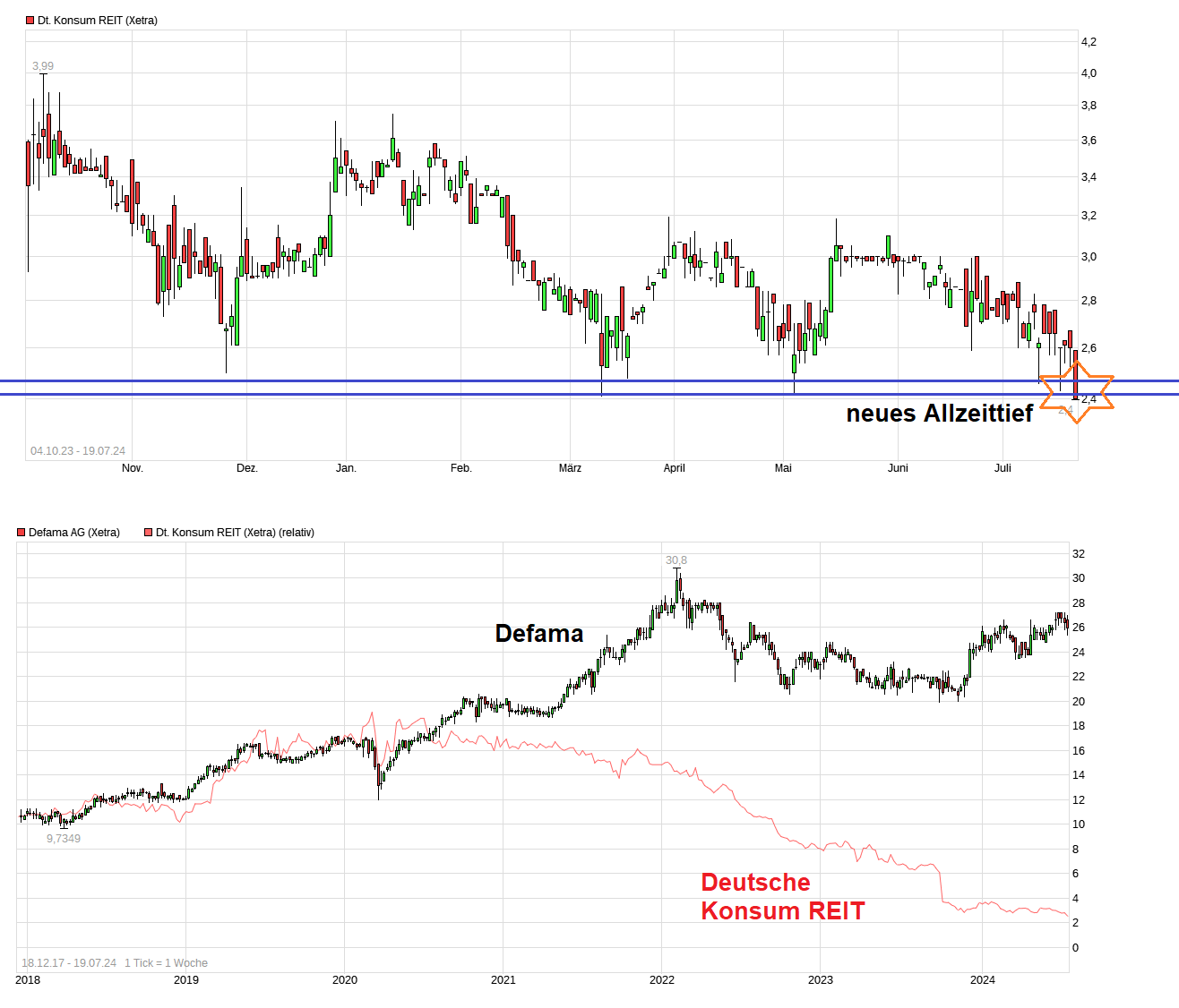 29.07.2024 Deutsche Konsum REIT-AG: Veröffentlichung gemäß § 40 Abs. 1 WpHG mit dem Ziel der europaweiten Verbreitung https://www.ariva.de/news/...deutsche-konsum-reit-ag-deutsch-11321856 - Angaben zum Mitteilungspflichtigen Person: Lotus Familyinvest AG, Registrierter Sitz, Staat: Innsbruck, Österreich ( => Ostdeutschland Invest GmbH), Datum der Schwellenberührung: 24.07.2024, Stimmrechte: neu 7,12% (Stück: 35155938 ), letzte 0% .