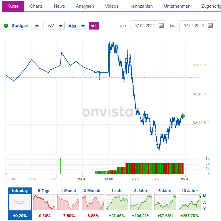 seit Oktober 2021 in einer Seitwärtsbewegung. Trotz allem notiert sie aktuell mit 53,49 Euro (03.02.2022)