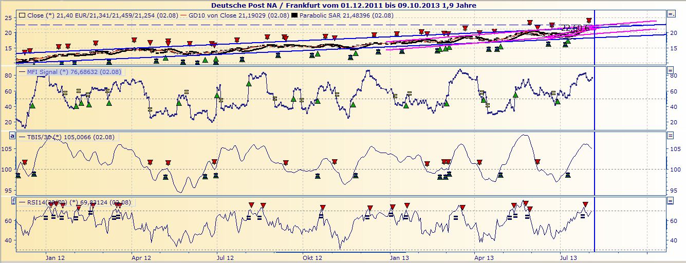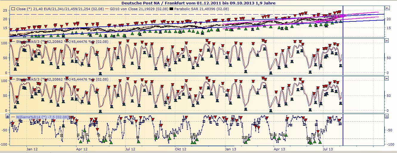 Nein, ich sehe im Moment keine Anzeichen für eine schwächere Gewinnentwicklung. Es war zunächst mal theoretisch. Aber das kann schnell gehen (neuer Konkurrent --- die Politik schießt gegen die Post --- geschäftliche Fehlentscheidungen etc. etc.). Deswegen sage ich die ganze Zeit, man muss die Augen offen halten.