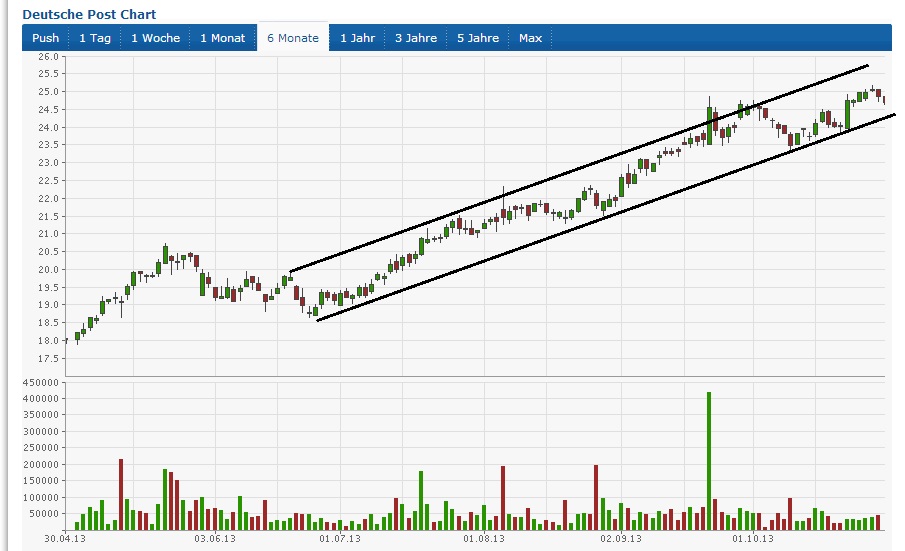 Schreibt man die Erwartungen innerhalb der Strategie 2015 fort, so ergibt sich für 2014 ein Betrag irgendwo zwischen 3,1 und 3,3 Milliarden, die natürlich noch nicht in den jetzigen Preisen enthalten sind. Dazu darf umd muss die Post auch gelegentlich Luft holen, damit der weiteren Kursanstieg eingeleitet werden kann.
