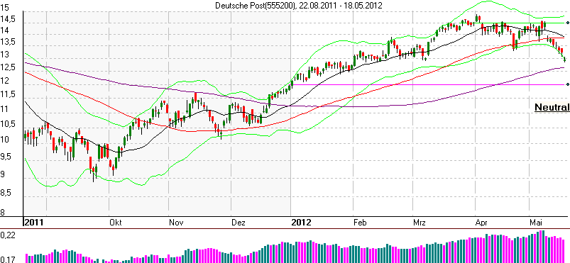 Gewinnmitnahmen bei starker Dividendenleistung rentieren sich wegen § 27 KStG. Werden Gewinne vor der Ausschüttung realisiert, so ist der volle Differenzbetrag zum Kauf der Aktien steuerpflichtig (800 Euro Freibetrag dann 28% Steuern auf die Gewinnsumme). Lässt man jedoch die Dividende auszahlen, so bleibt die Dividende nicht nur steuerfrei, sondern senkt entsprechend den Verkaufspreis. Beispiel: 1000 Aktien der Deutschen Post für 12,00 Euro gekauft und für 14,47 Euro verkauft macht 2470 Euro zu versteuernden Gewinn. Verkauft man jedoch nach der Dividendenzahlung (70 Cent mal 1000) so ist der Kurs zwar auf 13,77 gefallen aber die zu versteuernde Summe beträgt 1770 Euro. Das bedeutet, dass die Dividende für einen bestimmten Teil die Steuerlast senkt, wenn man abwartet. Da der Markt insgesamt derzeit schön schwach ist, werden die langfristigen Erträge noch deutlicher steigen, denn die prozentuale Dividendenrendite steigt mit fallenden Kursen. Die im Forum vertretene Meinung bezüglich des acyklischen Kaufes von underperformenden Aktien, ist eine gute Strategie - hat nur einen kleinen Haken: Die Fundamentalen Daten der Firma müssen mindestens stabil sein, ansonsten verbleibt es bei der Underperformance. Ich hatte 2010 mit dieser Strategie bei der Lufthansa Erfolg, würde jedoch derzeit keinen Dax Wert in einer entsprechenden Lage einschätzen. Das Abwärtspotential des Index ist derzeit nicht charttechnisch berechenbar, da der Abwärtsimpuls auschließlich politisch ist. Unterhalb von 6000 stehen jedoch bei den deutsche Firmen massive Kaufabsichten, so dass ich 5817 als vorerst tiefstes Ziel (= Durchschnitt aus bestimmten KGV´s) ansehe. Darunter ist das Wertverhältniss zum Kaufpreis zu günstig und wird die Kurse wieder antreiben. Wie ich bereits zuvor geschrieben habe, sollte diese Phase bis Quartalsende andauern. Dann "geht die Post ab", und wer zuspät kommt, den bestrafen die Verkäufer.