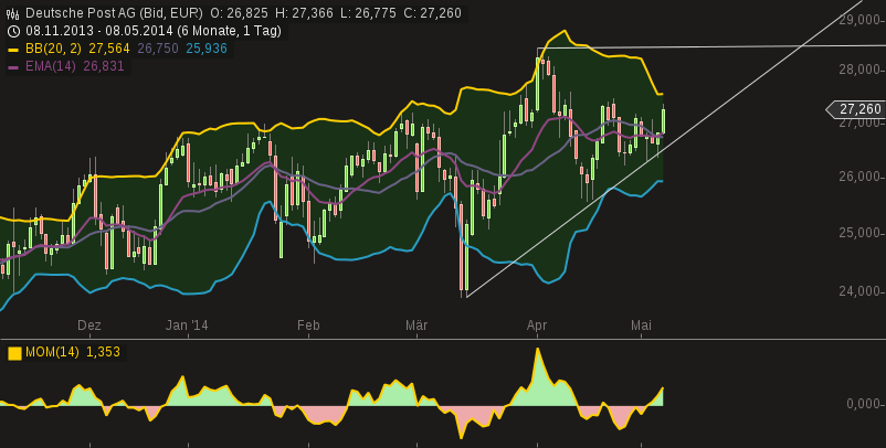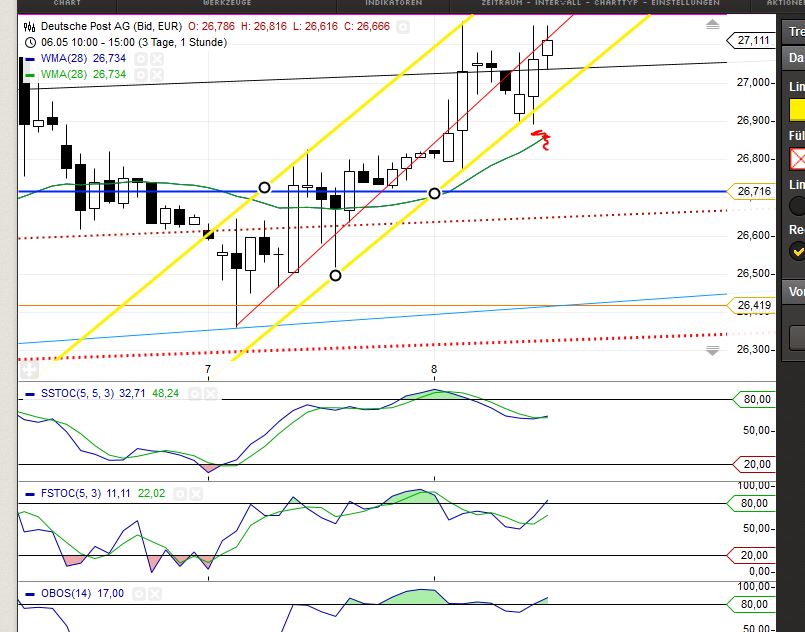 Ganz heftig kommt es, wenn auch der Dax aus seiner Seitwärtsphase ausbricht. Selbst ein nur kurzfristiger Ausbruch für 5 bis 10 Handelstage zusammen mit den Zahlen der Post...