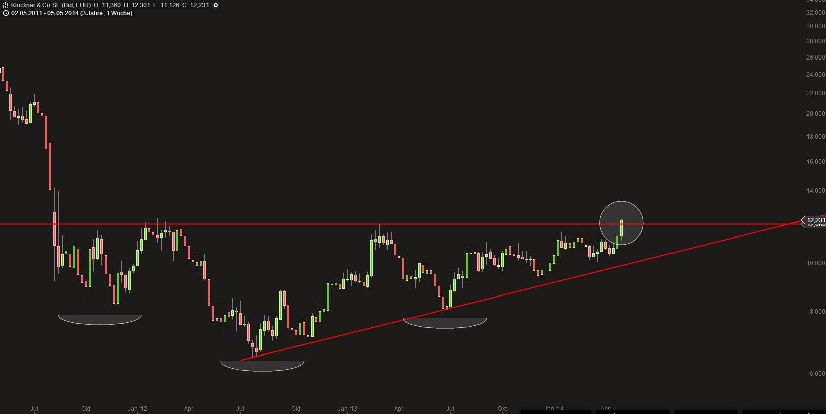 Wie jeder am 3-Monats-Chart erkennen kann, ist jetzt sofort Platz bis zur oberen Trendkanalbegrenzung bei etwa 29,30 (täglich steigend). Das bietet sofort auch kurzfristigen Zockern gute Möglichkeiten auf die Zahlen zusetzen und von heute 27,30 auf 29,30 eine starke Performance in der nächsten Woche zu erzielen. Einziger Haken : Die Zahlen sind besser als erwartet, dann ist 29,30 keine Marke auf die man setzen sollte.