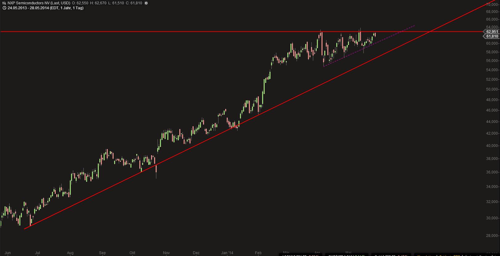 Dert Wert hat im Aufwärtstrend jetzt wieder ordentlich in einer Flagge korrigiert...
