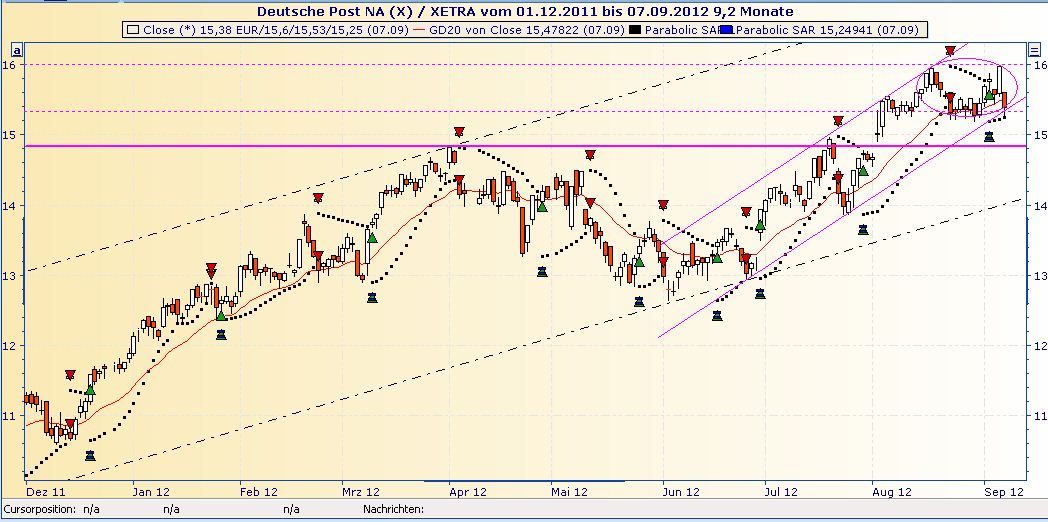 Welche Absicht soll mit dem Verkauf und dem Kauf verfolgt werden? Für den Staat ist es klar, bei ordentlicher Kurslage kann der BM Finanzen gute Kasse machen. Die Verkausmenge ist für den Haushalt eine relevante Grösse, denn die Aktien werden nicht über den freien Handel verkauft sondern über die US-Bank im Gebotsverfahren. Angeblich soll das Startgebot bei 950 Millionen Euro liegen, das sind 15,833 pro Aktie (also fast genau 1% unter der 16 Euro Marke). Taktisch geschickt sollen die Gebote sich an den aktuellen Bösenkursen orientieren ohne allzuweite Auf- oder Abschläge zu verursachen. Die Absicht der Kaufinteressenten ist eigentlich auch klar. Durch die extrem lange andauernde Durststrecke der Grossanleger, die ihre Kapitalmengen nur nach strengen Vorgaben anlegen dürfen, sind die möglichen Anlageziele sehr gering. In Frage kommen Lebensversicherer, Rückversicherer und gemischte Rentenfonds. Diese könnten durch Umschichtung ihrer Sortimente das zulässige Rating auch mit den Postanteilen einhalten. Dafür sind offensichtlich die neuesten Geschäftszahlen so vielversprechend, dass hier ein grosser Einstieg lohnt. Selbst für Banken würde sich ein Kauf lohnen, sofern beispielsweise dieses Kapital als Teil der Kernquote als Sicherheit zur Bewertung angenommen wird. (HäHä der über 1% tige Anteil meiner Hausbank an der Commerzbank ist wohl nicht mehr als Sicherheit geeignet).