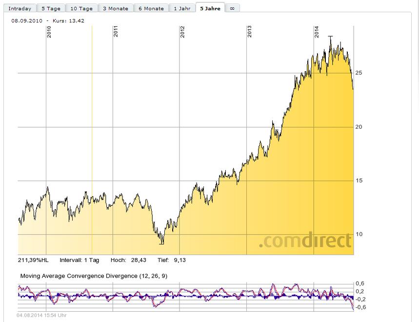 Merkwürdig finde ich nur, dass überhaupt keine Infos zum laufenden Rechtsstreit der EU gegen die Bundesrepublik und die Post wegen der Rückzahlung von 298 Mio. an die Post zu erhalten sind. Viele betrachten das so wie ich als Mißachtung der Rechtsprechung der EuGH, der bereits wiederholt auf die Unzulässigkeit der Rückforderung erkannt hat. Sollte dieser "Sondereffekt" noch 2014 kommen, so liegt auch nach den jetzigen Zahlen das Ergebnis mit über 100 Mio. über den Erwartungen des Vorstandes für die Strategien. (2900 Mio. bis 3100 Mio.) Da wäre es mir eigentlich am Liebsten, wenn bis dahin der Dax schön wieder nach oben geht. (Grins) Natürlich verlangt die Post auch entsprechende Verzugszinsen, die noch zu dieser Summe dazu kommen. 2 Jahre sind schon um...