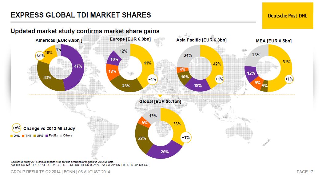 Die Gewinne in der Express-Sparte seien vor allem auf das vierte Quartal konzentriert. Insofern sei zunächst Vertrauen gefragt. Zusätzliche operative Ausgaben in den Bereichen Forwarding und Supply Chain würden langfristig auf Grund höherer Margen Nutzen bringen. Während die EPS-Schätzung für 2015 um 3,1% auf 1,82 EUR gekürzt werde, habe die Prognose für 2016 mit 2,10 EUR fast unverändert Bestand.
