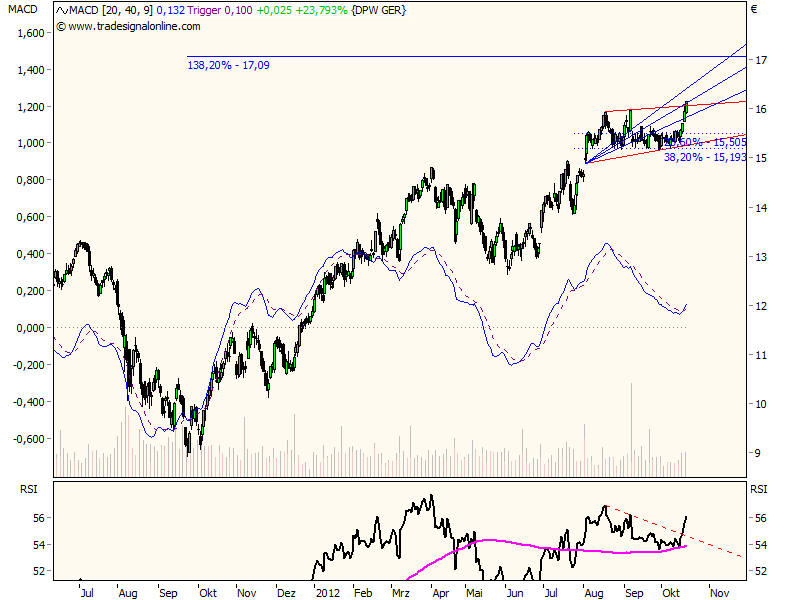 Beim Betrachten der Kursentwicklung bin ich wohl etwas eingenickt. Dabei hatte ich einen Traum, der einem Chartlord würdig war. Ich träumte, ich würde auf eine erfogreiche Aktienanlage anstossen. Ganz überrascht vom Umtrunk bin ich wieder wach geworden. Während ich nochmals die heutigen Beiträge überfliege und mich über angeblich fehlenden Nachrichten der Post wundere, habe ich mir überlegt, ob es nicht etwas richtig stilvolles für einen Chartlord gibt, mit dem ich auf die Post anstossen könnte. Mal sehen, erstmal auf die angeblich fehlende Nachricht antworten, dann wird mir schon was einfallen. Also es gibt Meldungen, die anders als auf den ersten Blick eine ganz andere Bedeutung haben. Nehmen wir zum Beispiel Ebay. Die haben gerade ihre neuesten Zahlen mit +15% Wachstum gemeldet. Nimmt man jedoch einen Radiergummi und radiert mal den Namen Ebay weg - so kommen vier andere Buchstaben ans Licht POST. Woran das wohl liegt ? Hat die Post etwa auch 15% Wachstum wie die Internethändler? Nein, ganz bestimmt nicht. Denn bei nur 15% Wachstum wären zwar alle Verkäufe darin enthalten, die mehr auszuliefern sind, es fehlen jedoch alle zusätzlichen Umtauschlieferungen, die bei Ebay nicht angegeben worden sind !!! Selbst wenn nur 10% Umtausch anfällt (und es snd natürlich mehr) wären das schon 16,5% mehr Sendungen auf den Anteil der Post. Daran sieht man, dass man einige Nachrichten mal gründlicher durchleuchten muss um die Auswirkungen zu erfassen.